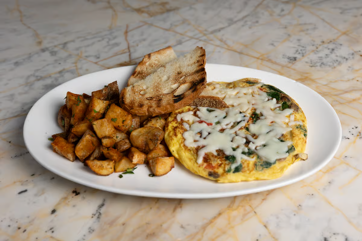 Create Your Own OmeletteFillings: ham, bacon, sausage, swiss, cheddar, feta, peppers, spinach, mushrooms, tomatoes, onions (choice of 3). Each additional topping +$1.99. Served with rosemary roasted potatoes.$13.99